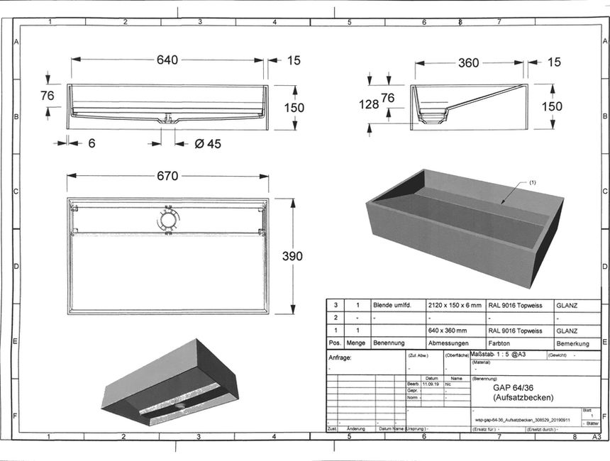 Waschtisch Aufsatzbecken «GAP 64/36»